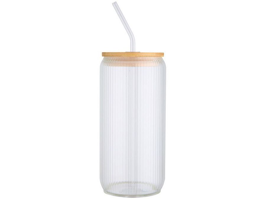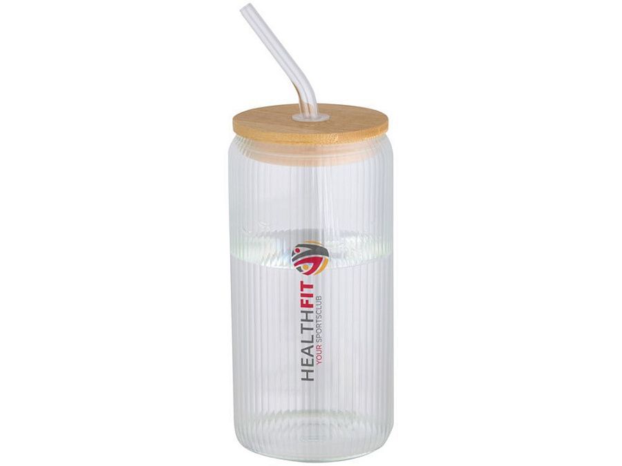 Банка из боросиликатного стекла со стеклянной трубочкой и бамбуковой крышкой. Банка имеет уникальный ребристый дизайн внутри и гладкую внешнюю поверхность, идеально подходящую для печати логотипа. Используемый бамбук выращивается в экологически чистых условиях с соблюдением принципов экологической и социальной ответственности. Поставляется в подарочной коробке из переработанного картона. Объем: 650 мл. 90% Боросиликатное стекло, 10% Бамбук с сертификатом FSC. упаковка FSC Mix 100% P5 CU-COC-877277. FSC Mix Credit N5 CU-COC-877277.