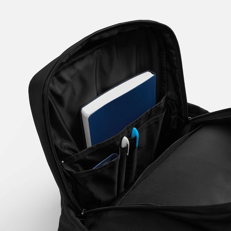 Специальное отделение на молнии с мягкими стенками надежно фиксирует ноутбук, защищая его от ударов и повреждений во время переноски. Основное отделение оснащено удобной панелью‑органайзером, позволяющей структурированно разместить документы и другие необходимые предметы.