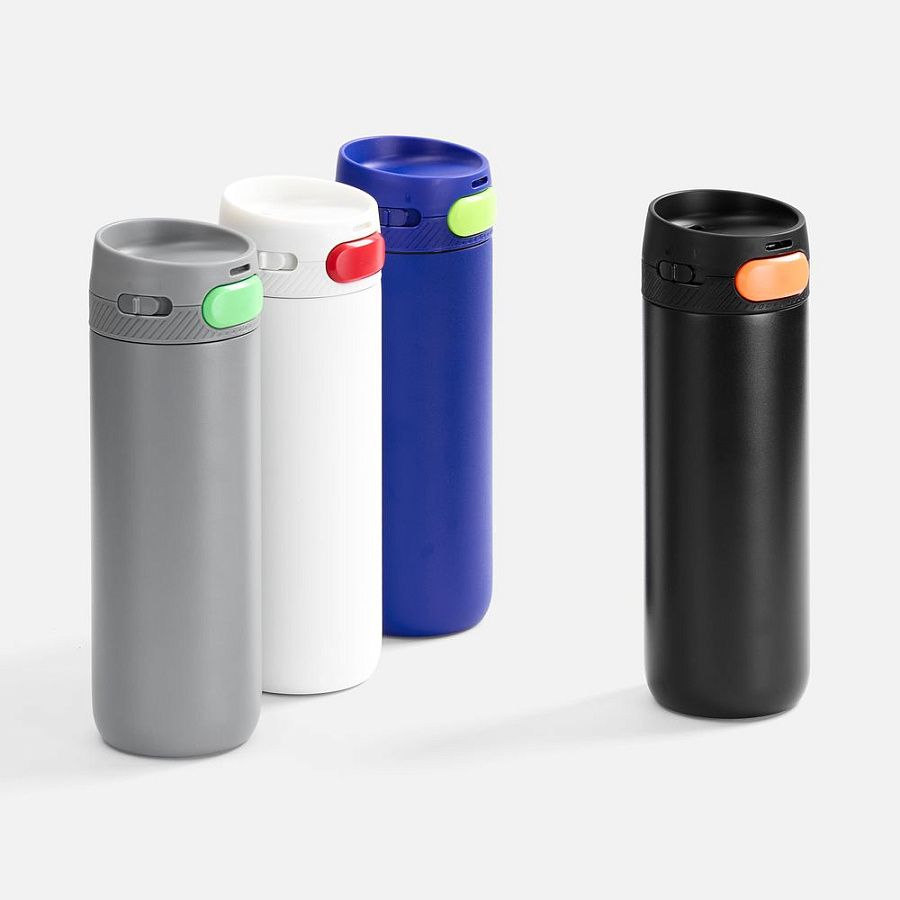 Термостакан X1 с цветной кнопкой, серый с оранжевым