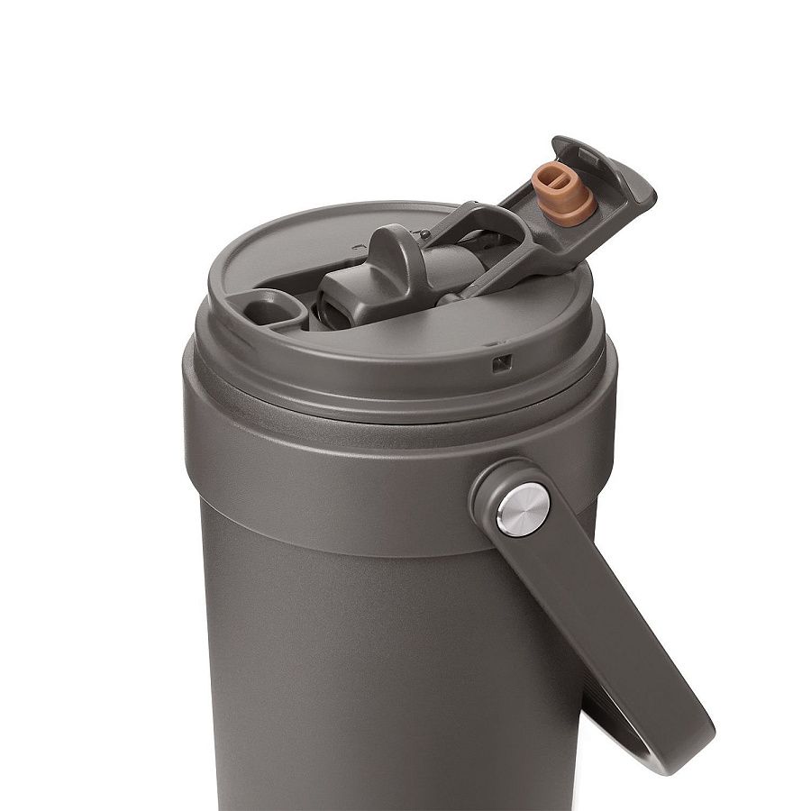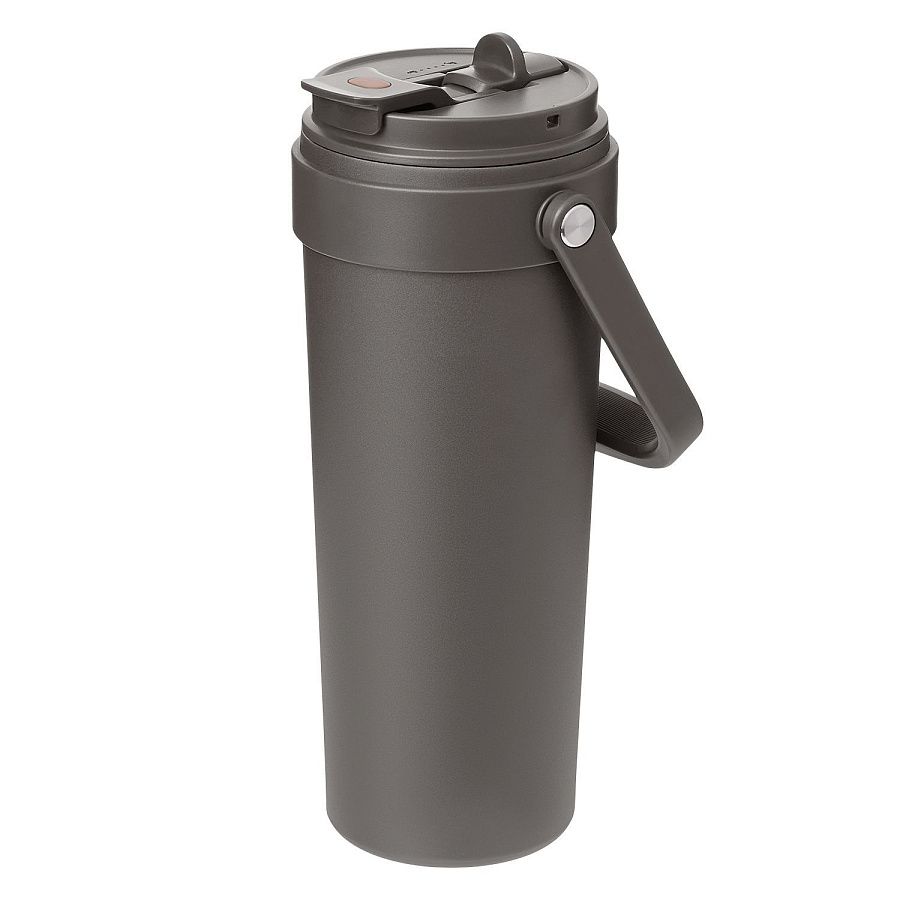 Крышка оснащена трубочкой для холодных напитков и классическим клапаном для горячих.  Функциональная завинчивающаяся крышка с удобной ручкой и надежным клапаном с силиконовым уплотнителем обеспечивает безопасность в использовании.