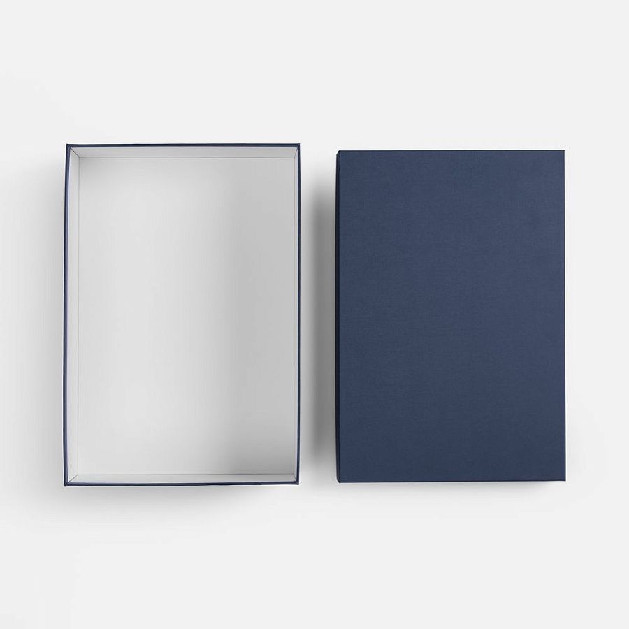 Коробка изготовлена из переплетного картона, кашированного дизайнерской бумагой.