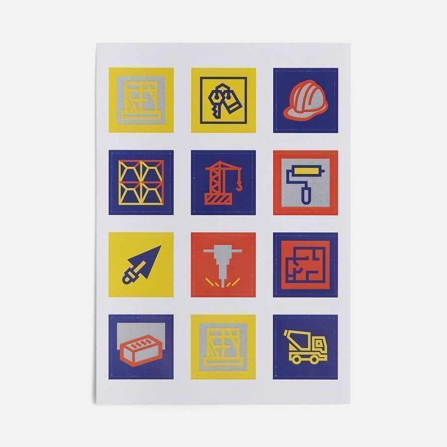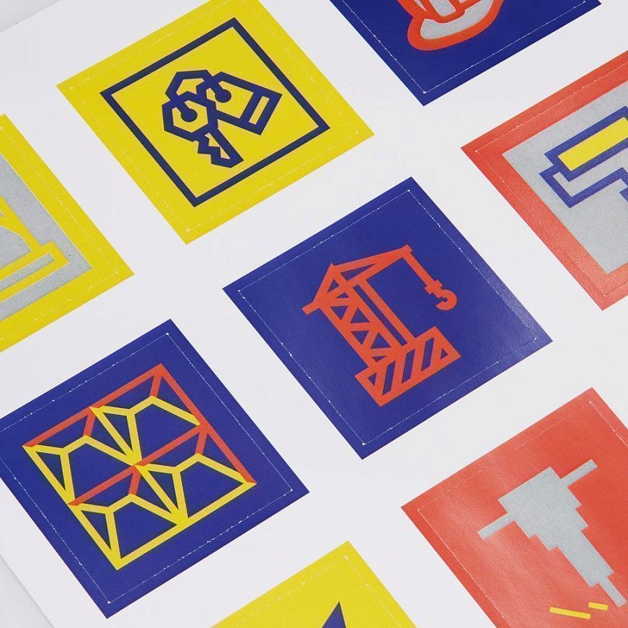 В каждой части общего рисунка изображены главные символы, связанные со строительством.