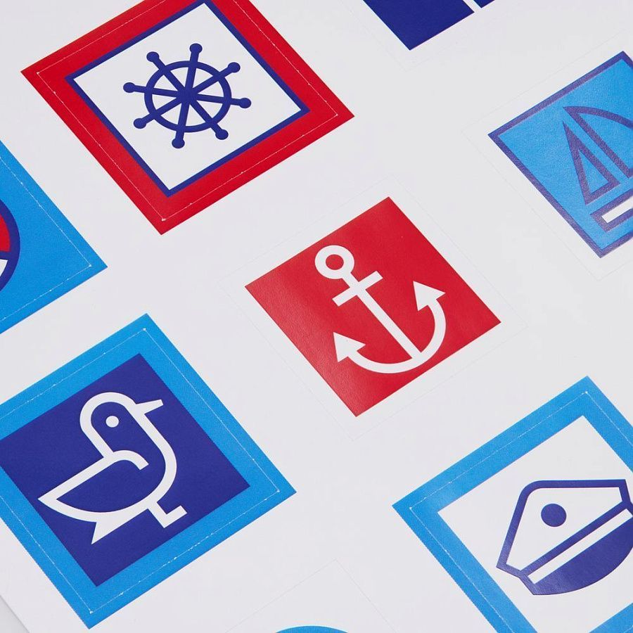 В каждой части общего рисунка изображены главные символы, связанные с морской отраслью