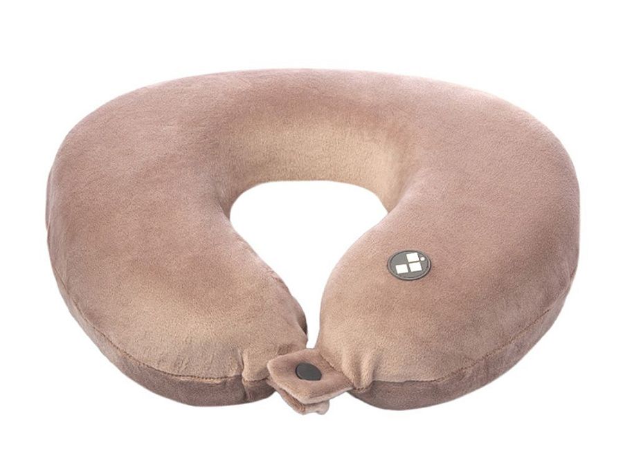Удобная кнопочная застёжка надёжно фиксирует подушку на шее, а в комплект входит прочный круглый чехол на молнии — для компактного хранения и перевозки.