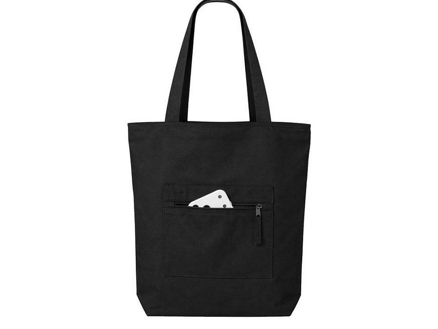 Преимущество этой сумки в наличии застежки молнии на основном отделении - ее содержимое остается закрытым. Донная складка увеличивает вместимость. Снаружи расположен карман на молнии. Парусиновые ручки в тон сумки.