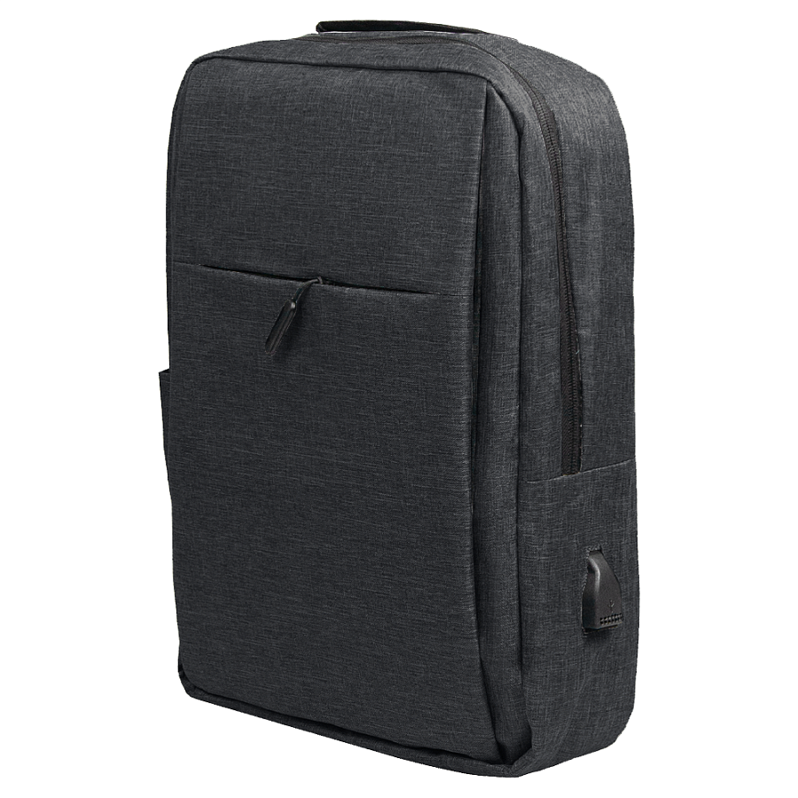 Практичная модель, удобная для использования в повседневной жизни. Имеет два вместительных передних кармана, один из которых скрытый и один боковой карман. Основное отделение содержит внутренний карман на липучке для ноутбука, 2 кармана для мелочей и 2 кармана для письменных принадлежностей. Снаружи расположен USB-разъем с проводом внутри для подключения внешнего аккумулятора, широкие вентилируемые лямки.