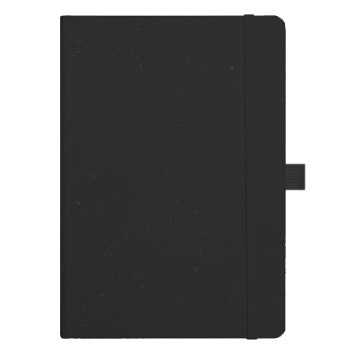 Твердая обложка выполнена из переработанной бумаги с характерной фактурой: матовая, слегка шероховатая поверхность с едва заметными вкраплениями волокон создает ощущение натуральности и тепла, напоминая ручную бумагу премиум-класса. Такой материал не только подчеркивает заботу об окружающей среде, но и придает блокноту уникальный винтажный шарм.