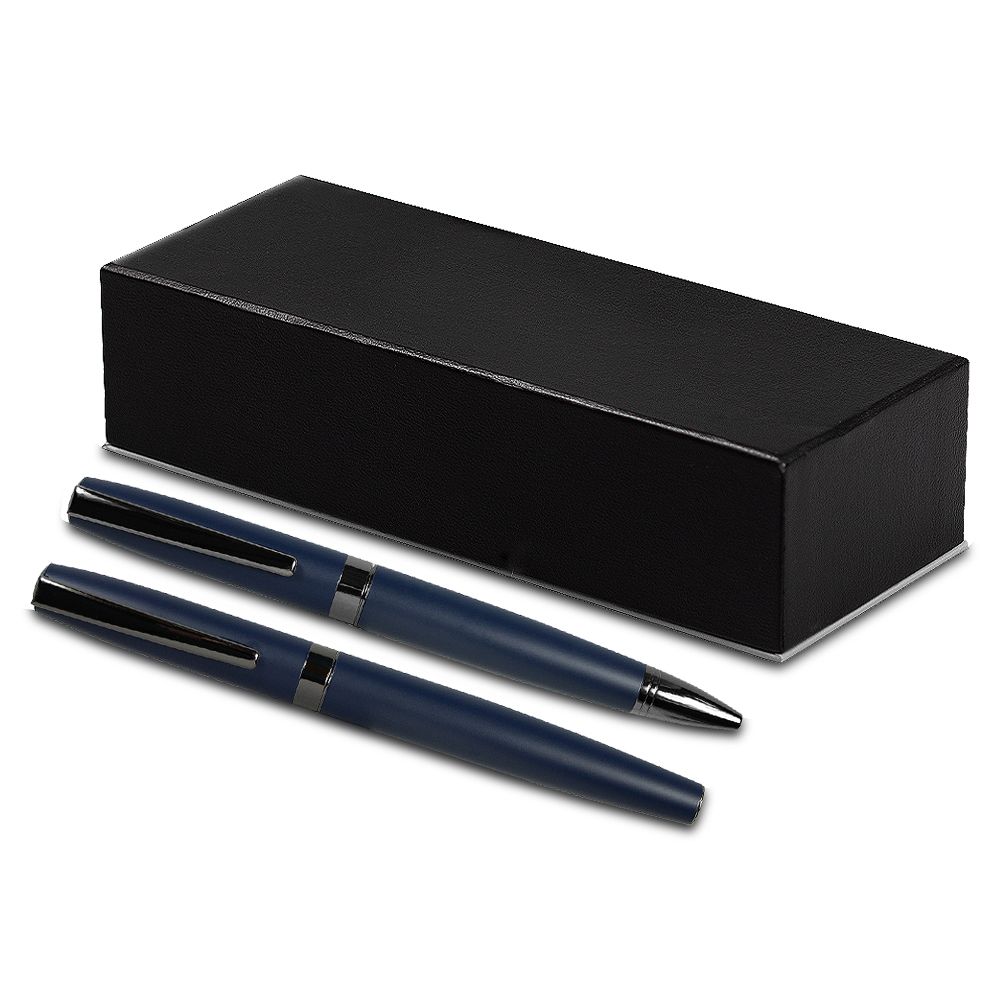 Набор ручек Prime Solution, темно-синий (ручка шариковая, роллер) в подарочной коробке Emotion