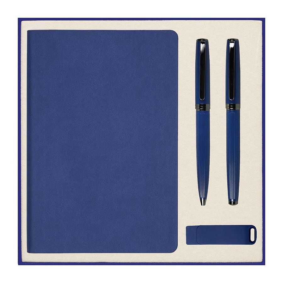Набор подарочный Solution Prestige Quardo ( ежедневник, флешка, шариковая ручка, ручка роллер), синий, артикул 615043.04