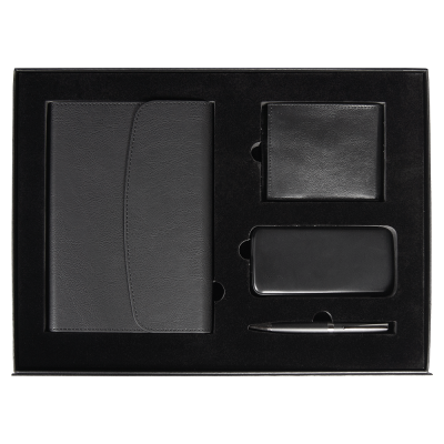 Набор подарочный Solution Prestige Quadro ( ежедневник в суперобложке, кошелек, внешний аккумулятор, ручка), черный