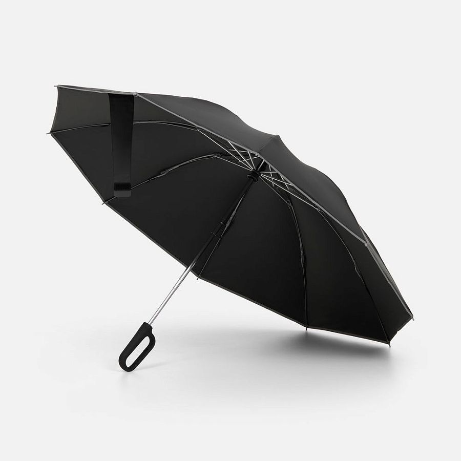 Складываясь после дождя, он прячет мокрую поверхность внутри, а сухая остается снаружи — в закрытом положении зонт не побеспокоит окружающих и не намочит одежду. За ручку-карабин зонт удобно подвесить, например, на рюкзак.
