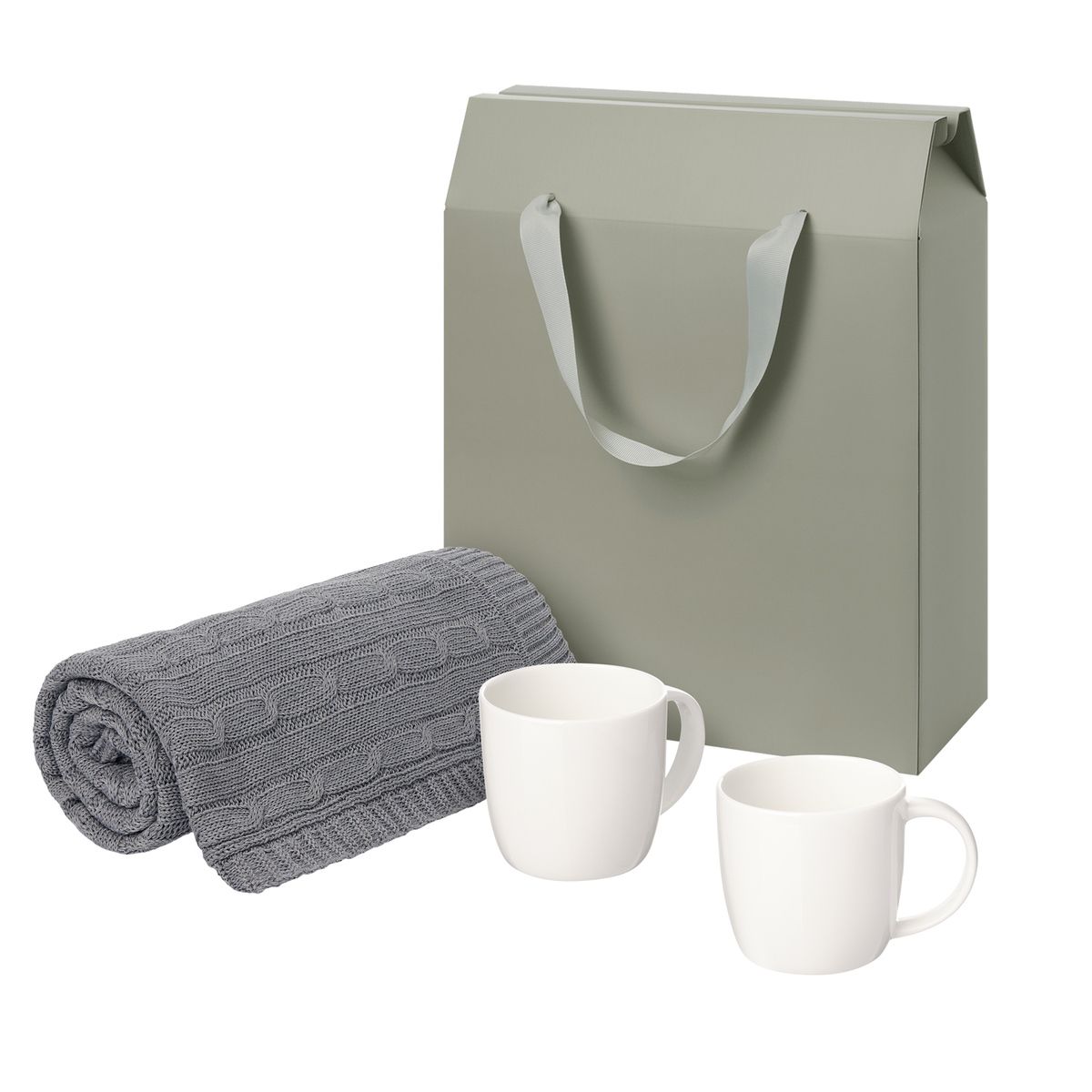 Подарочный набор Дафна (Dafna), Селла (Cella), серый в коробке-пакете (две фарфоровых кружки, плед)