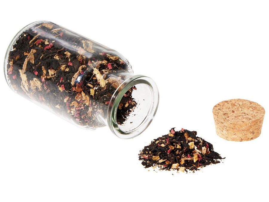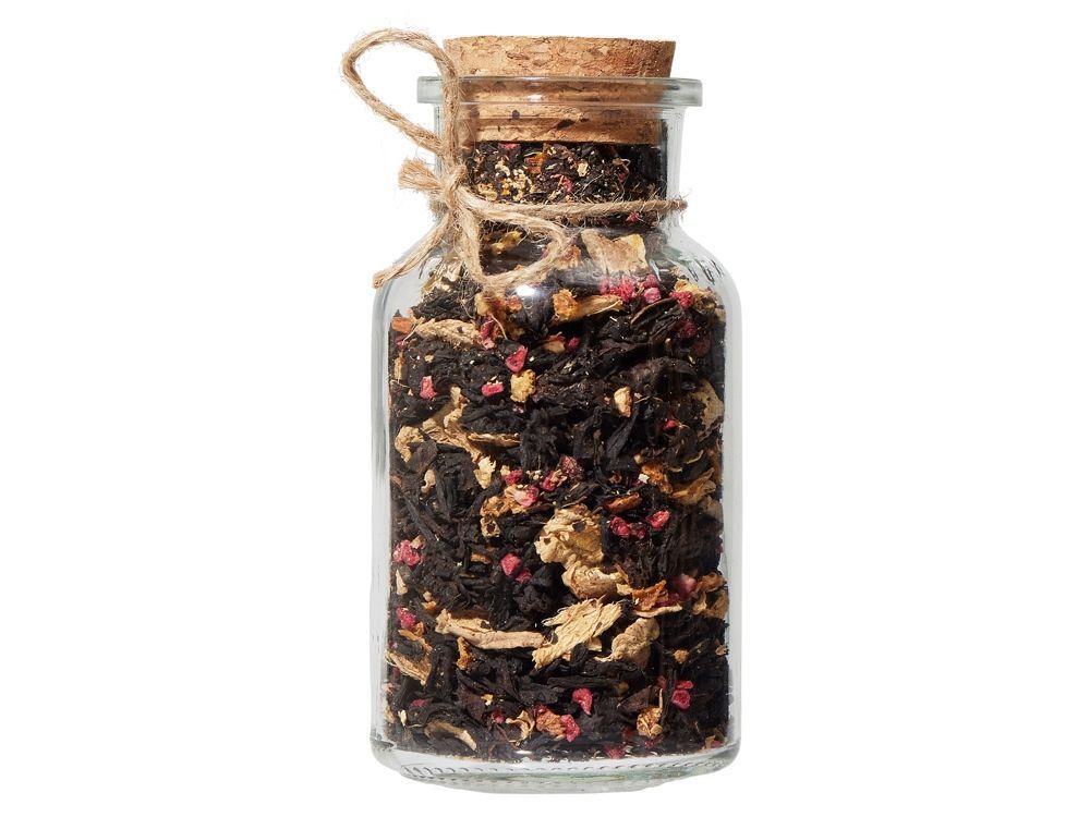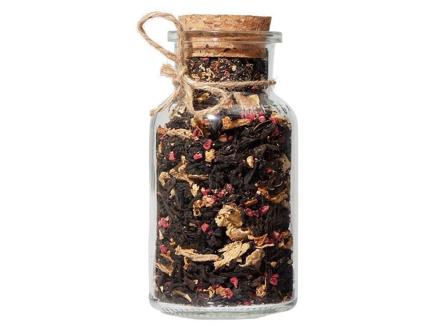 Состав: чай чёрный с имбирём и соком имбиря (чай чёрный байховый крупнолистовой, кусочки имбиря, сок имбиря), медовые гранулы, корица дроблёная.