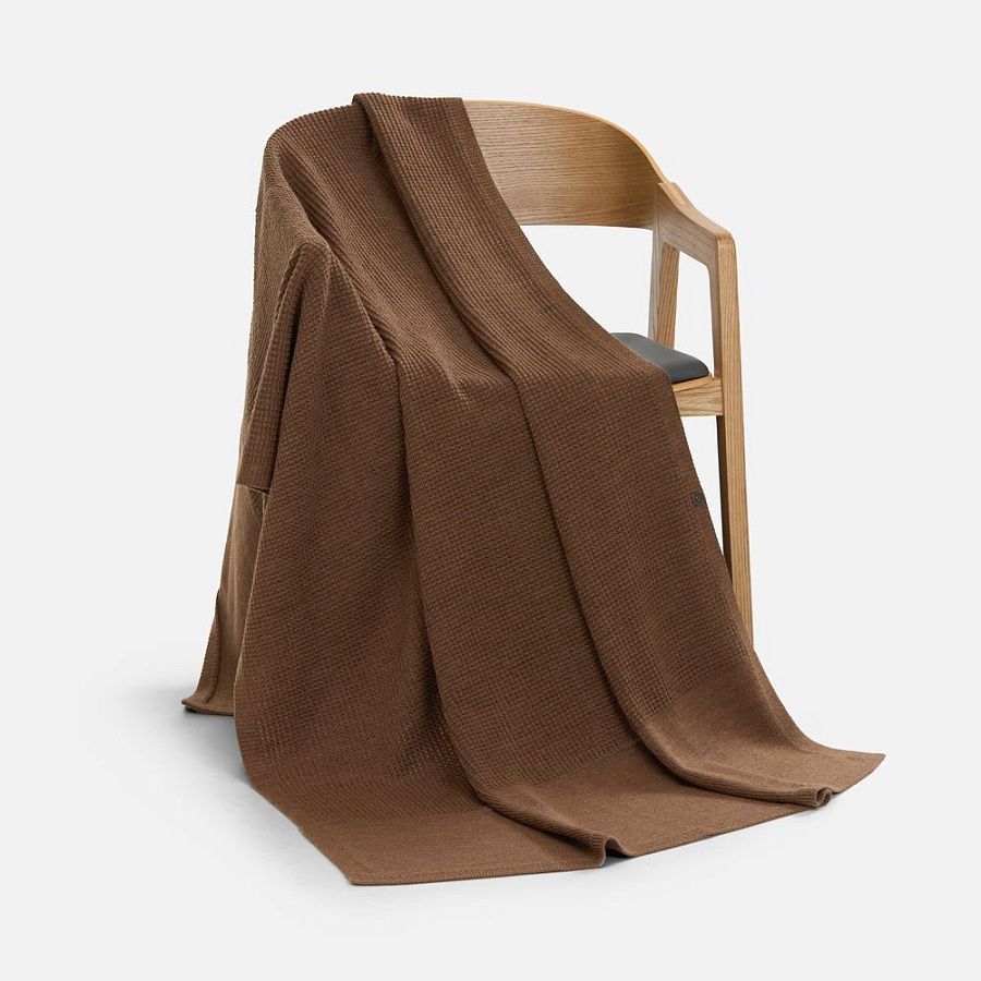 Плед поставляется в стильном кофре с аккуратным кошелечком на кнопке — продуманная деталь для удобного хранения и бережной транспортировки. Такой плед легко взять с собой в путешествие, он станет вашим любимым спутником в прохладное время года.