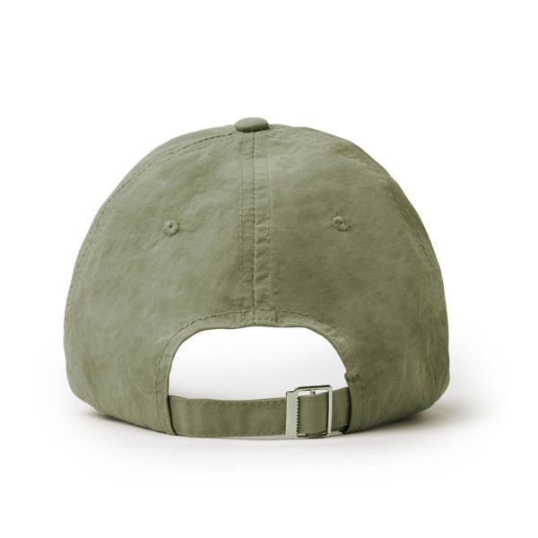 Кепка из 100% 6-панельного нейлона. Имеет внутреннюю ленту от потения по периметру. Шесть вышитых проушин, по одной на каждой панели, шестью соответствующих строчек и регулируемую застежку с металлической пряжкой сзади.