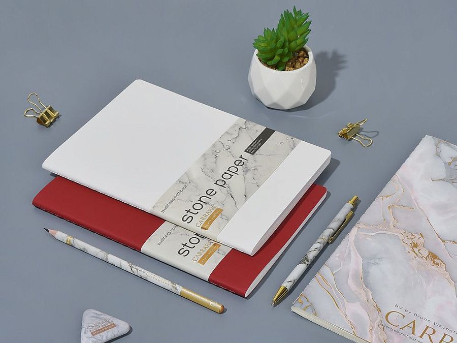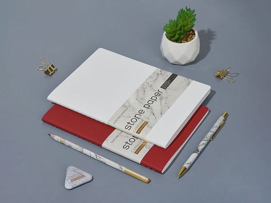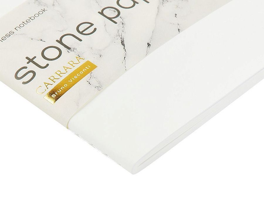 Блок изготовлен из каменной бумаги плотностью 144 г/кв.м, которая отличается особой гладкостью и повышенной прочностью. Она не боится воды, достаточно просто протереть сухой салфеткой.