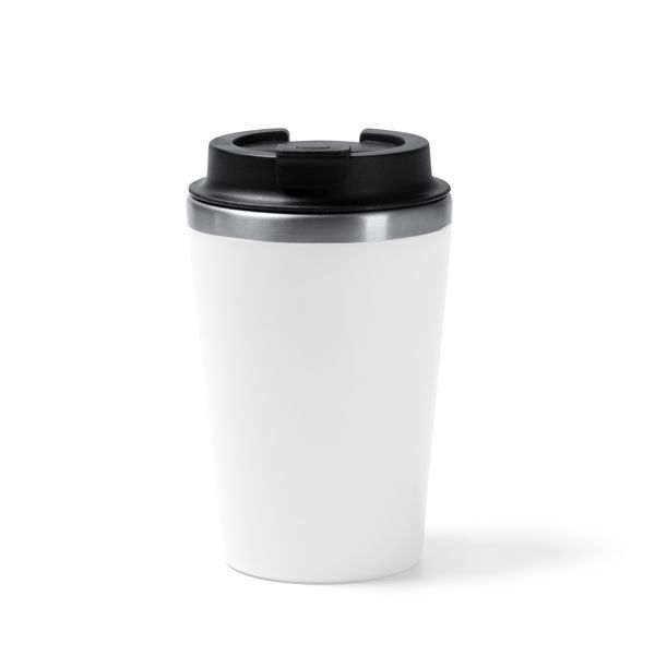 Чашка с двойными стенками. Внутренняя часть из нержавеющей стали 304, внешняя часть из переработанного полипропилена. Винтовая крышка, порт для питья закрывается на клапан. Объем: 350 мл. Презентация в дизайнерской коробке.
