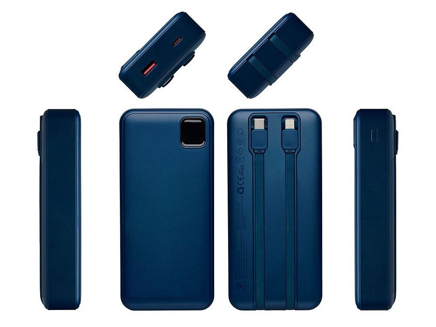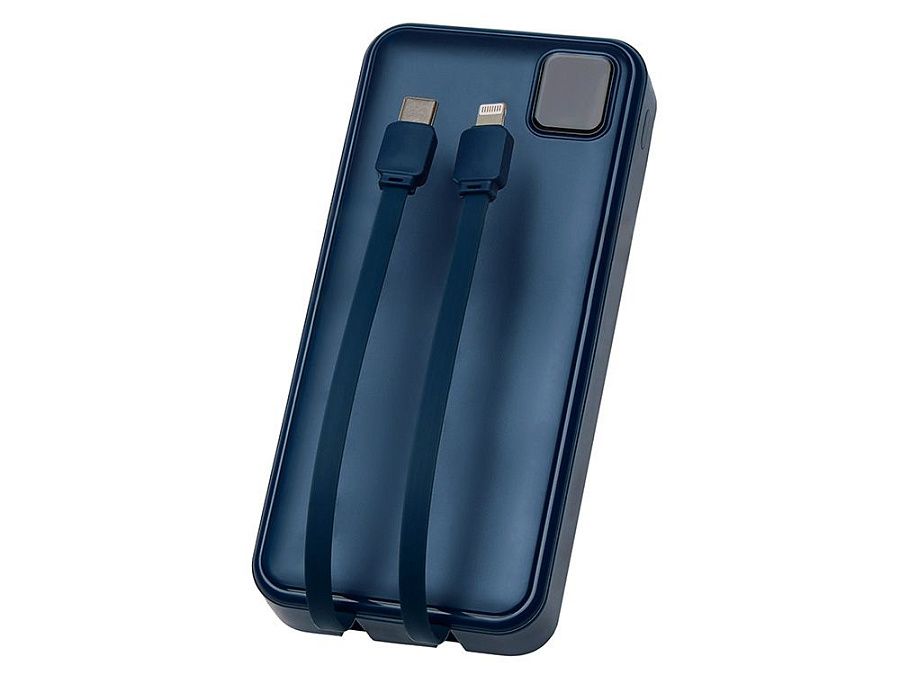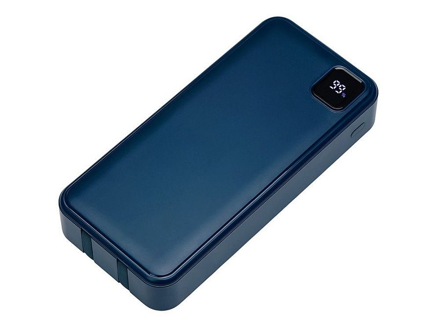 Удобный внешний аккумулятор с функцией быстрой зарядки и встроенными кабелями USB-C (симметричный разъём USB тип С) и Lightning (разъём в ранних версиях iPhone) — ваш надежный партнер в путешествиях, на встречах и в повседневных задачах. Цифровой дисплей в реальном времени показывает точный остаток заряда и статус быстрой зарядки, а встроенные кабели и несколько разъемов позволяют заряжать до 4 устройств. Прочный корпус из переработанного АБС-пластика и емкость 20000 мАч обеспечивают зарядом все ваши устройства на долгий срок. Идеальный выбор для тех, кто ценит комфорт и функциональность в одном устройстве. Продуманная упаковка: для открытия просто потяните за язычок, и появится гаджет с нанесением.