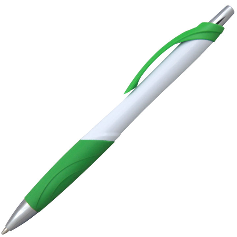 Ручка шариковая, пластиковая, белая/зеленая