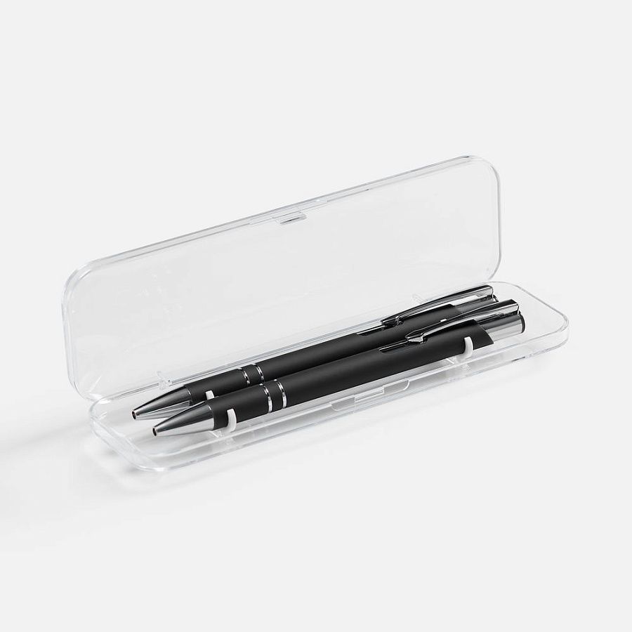 Набор из двух ручек Keskus с покрытием софт-тач в прозрачном пластиковом футляре.