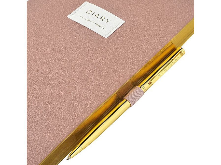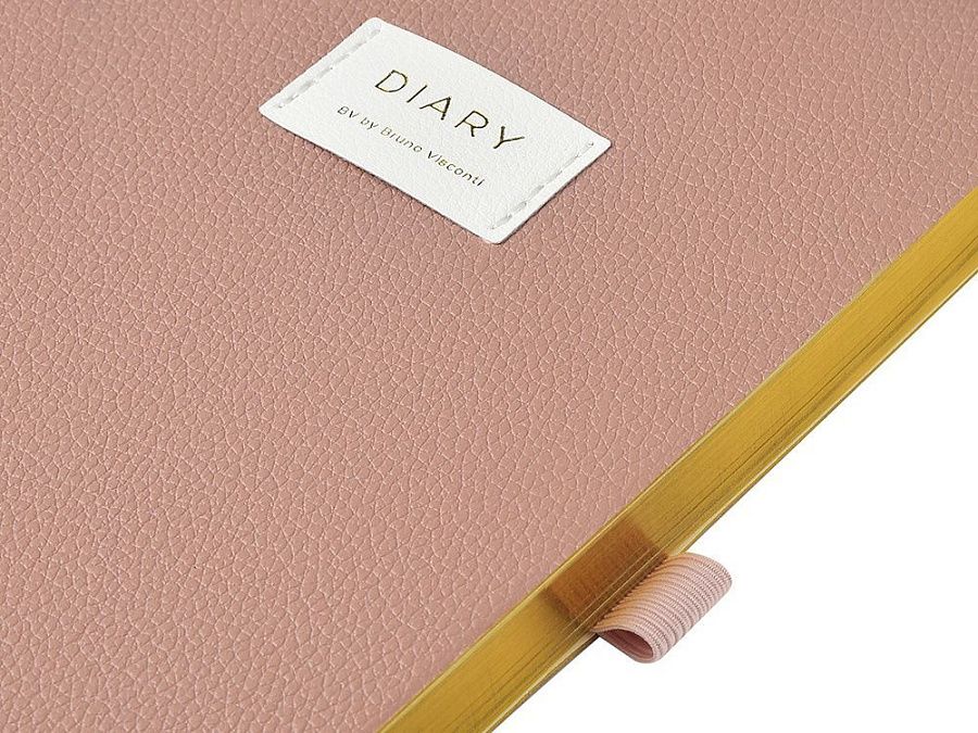 Внутри — недатированный блок формата А5 (125×200 мм) на бежевой бумаге 80 г/м². Книжный переплёт хорошо раскрывается, а скруглённые углы одновременно придают ежедневнику премиальный вид и защищают края при носке. Завершают детали ляссе в цвет обложки и петля для ручки — чтобы всё нужное было под рукой.