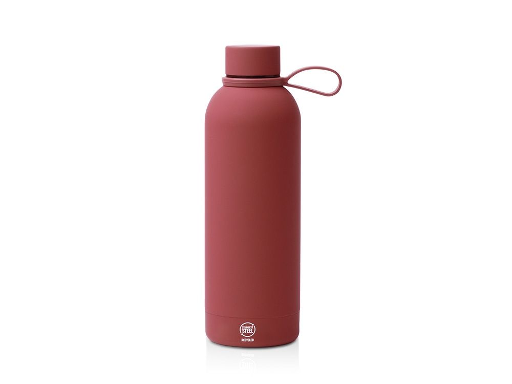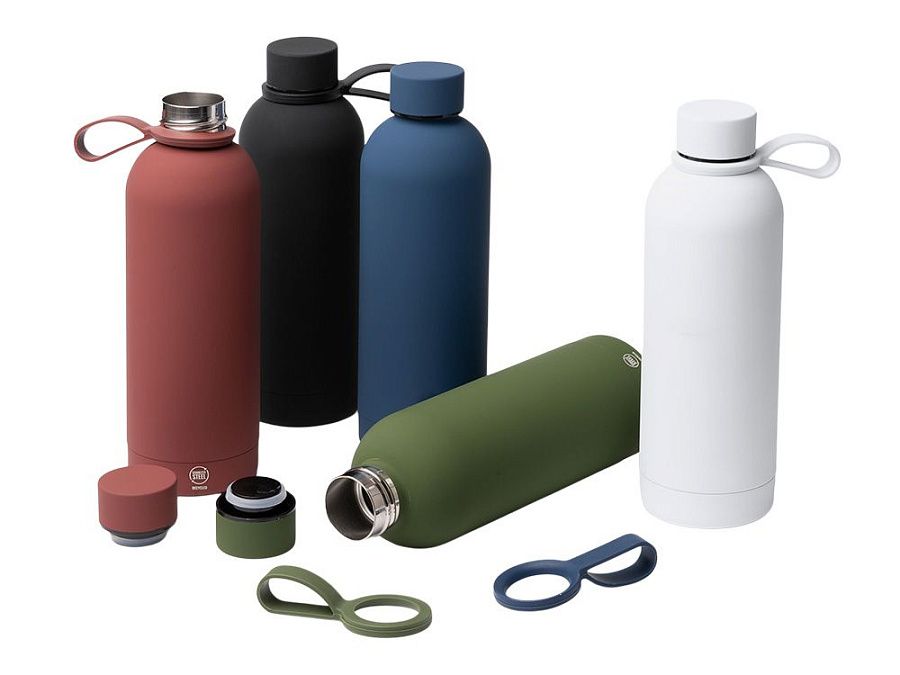 Термобутылка из переработанной нержавеющей стали 304. Мягкая прорезиненная поверхность на корпусе. Удобная силиконовая ручка для переноски. Оснащена противокапельной системой благодаря силиконовому кольцу, встроенному во внутреннюю часть крышки. Крышка и ручка соответствуют цвету корпуса. Объем: 500 мл.