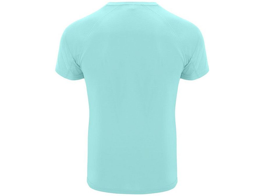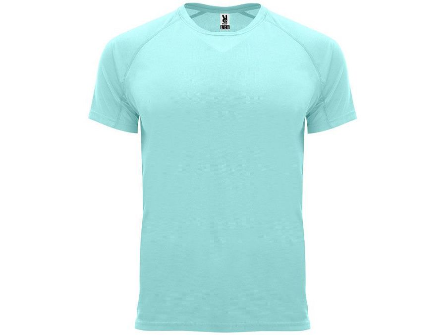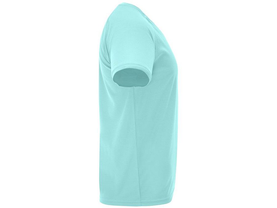Спортивная футболка с коротким рукавом реглан. Круглый вырез горловины с отделкой плоским швом. Рукав сложного кроя для обеспечения дополнительного удобства при занятиях спортом. Отделка плоским швом с застилом по пройме и рукавам.