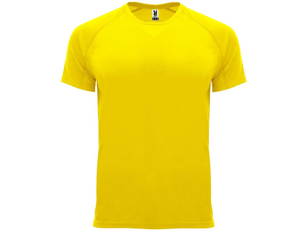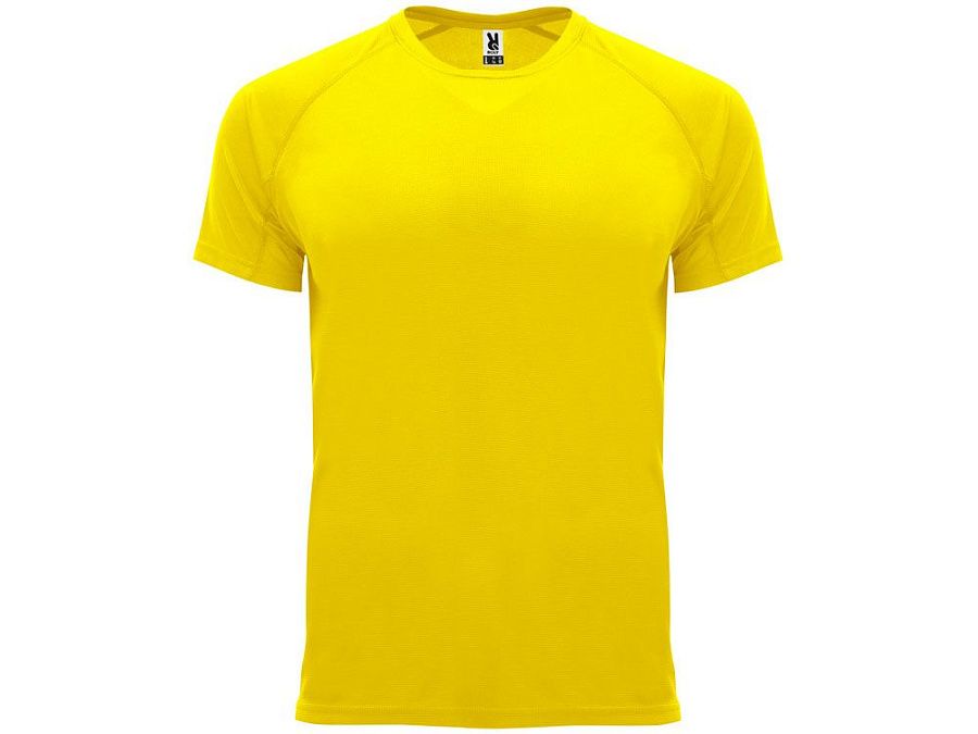 Спортивная футболка с коротким рукавом реглан. Круглый вырез горловины с отделкой плоским швом. Рукав сложного кроя для обеспечения дополнительного удобства при занятиях спортом. Отделка плоским швом с застилом по пройме и рукавам.