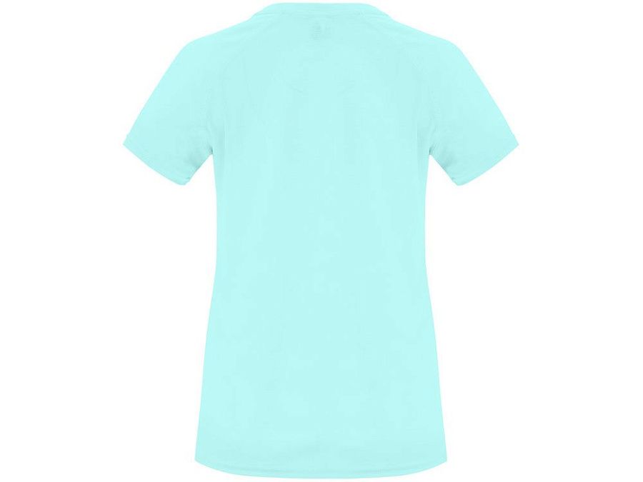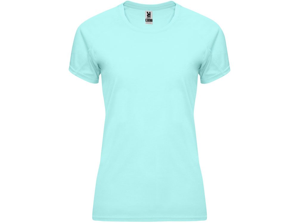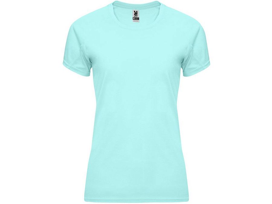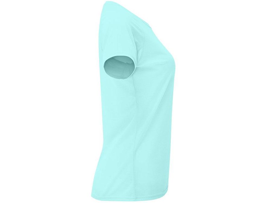 Спортивная футболка с коротким рукавом реглан для женщин. Круглый вырез горловины с отделкой плоским швом. Рукав сложного кроя для обеспечения дополнительного удобства при занятиях спортом. Отделка плоским швом с застилом по пройме и рукавам.