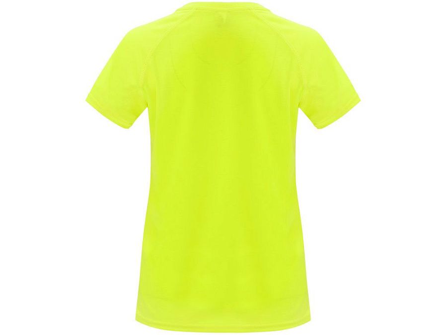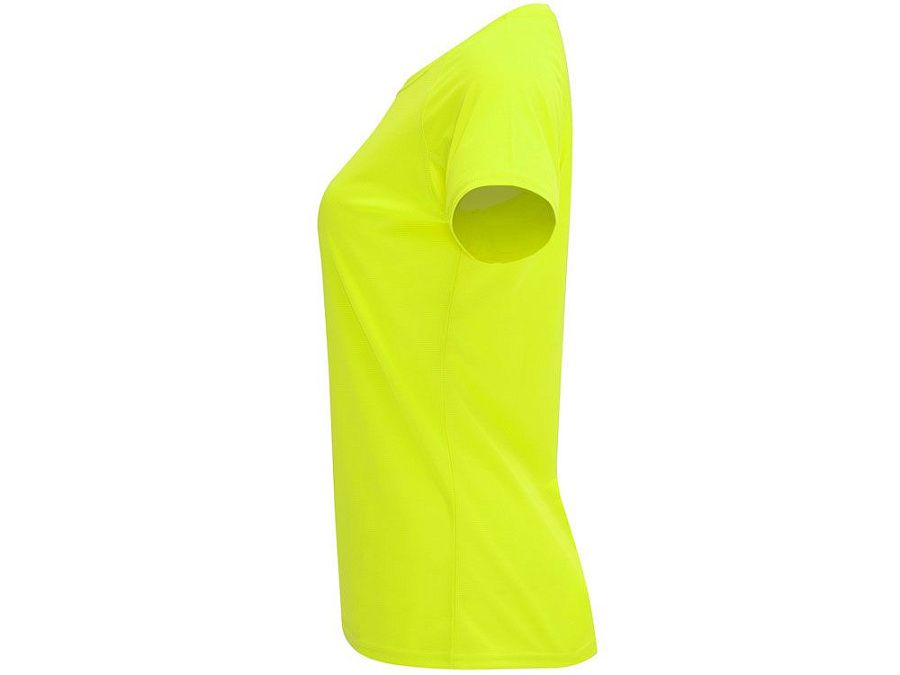Спортивная футболка с коротким рукавом реглан для женщин. Круглый вырез горловины с отделкой плоским швом. Рукав сложного кроя для обеспечения дополнительного удобства при занятиях спортом. Отделка плоским швом с застилом по пройме и рукавам.