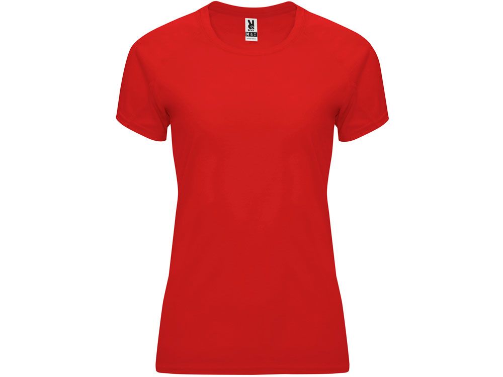 Спортивная футболка с коротким рукавом реглан для женщин. Круглый вырез горловины с отделкой плоским швом. Рукав сложного кроя для обеспечения дополнительного удобства при занятиях спортом. Отделка плоским швом с застилом по пройме и рукавам.