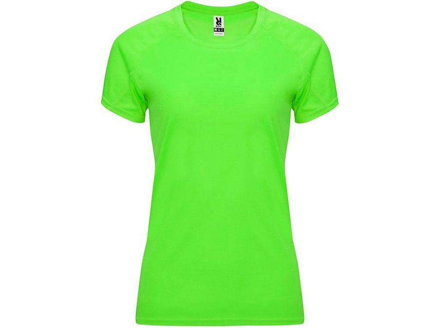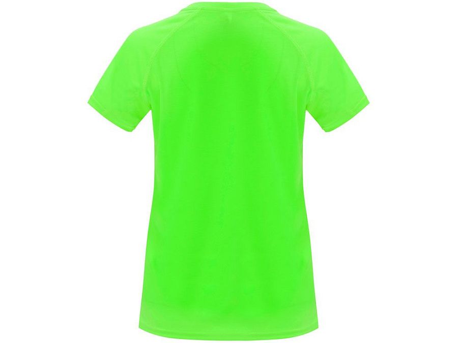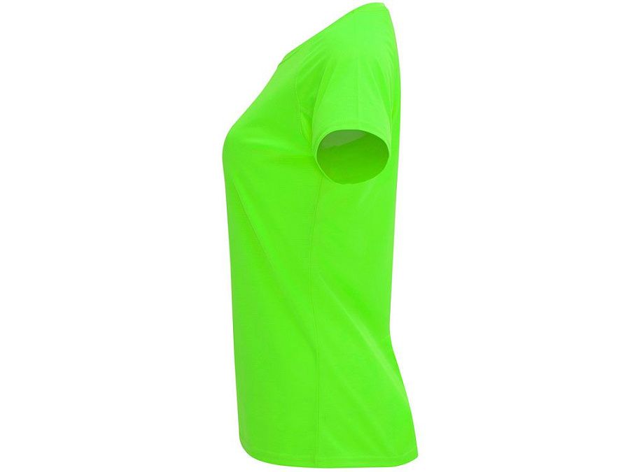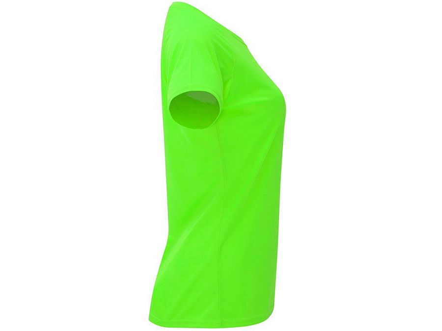 Спортивная футболка с коротким рукавом реглан для женщин. Круглый вырез горловины с отделкой плоским швом. Рукав сложного кроя для обеспечения дополнительного удобства при занятиях спортом. Отделка плоским швом с застилом по пройме и рукавам.