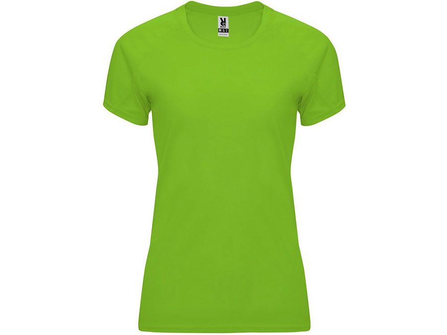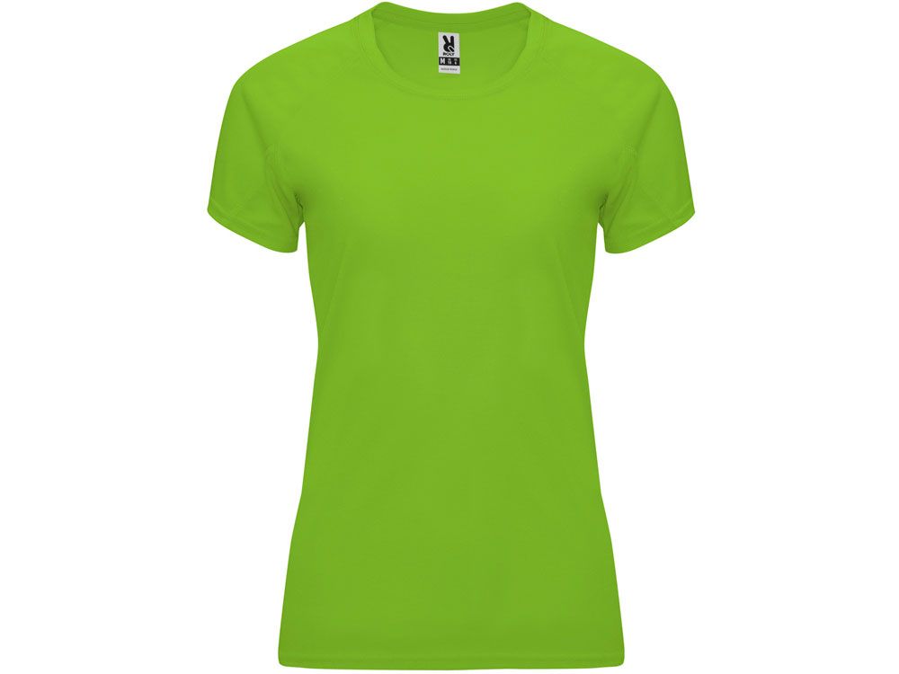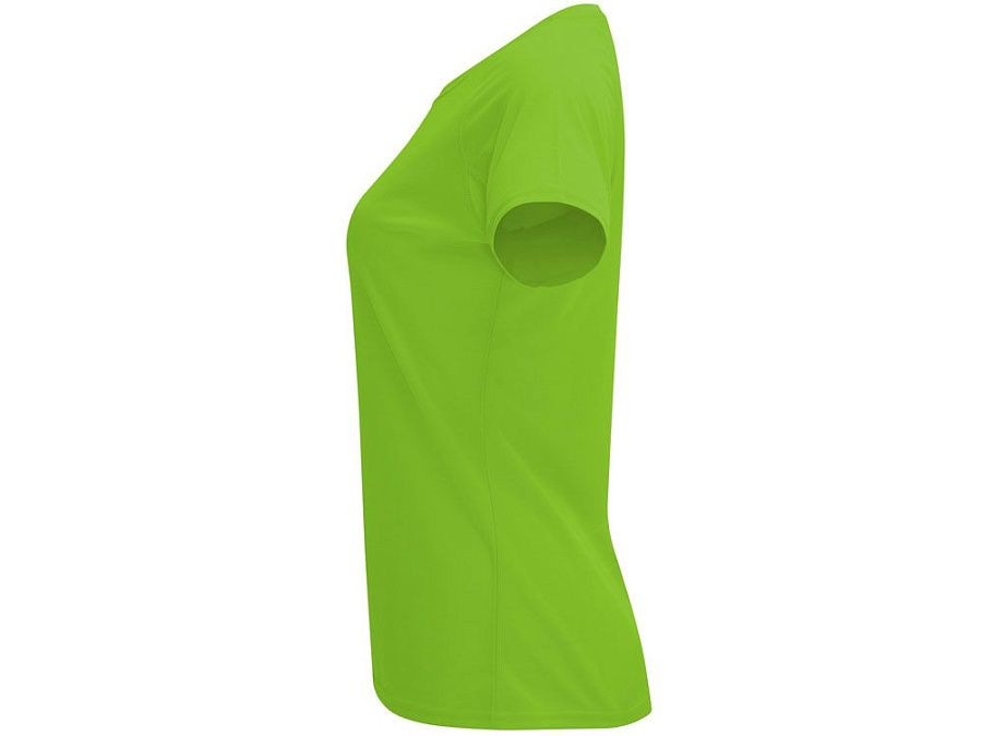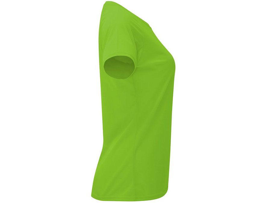 Спортивная футболка с коротким рукавом реглан для женщин. Круглый вырез горловины с отделкой плоским швом. Рукав сложного кроя для обеспечения дополнительного удобства при занятиях спортом. Отделка плоским швом с застилом по пройме и рукавам.