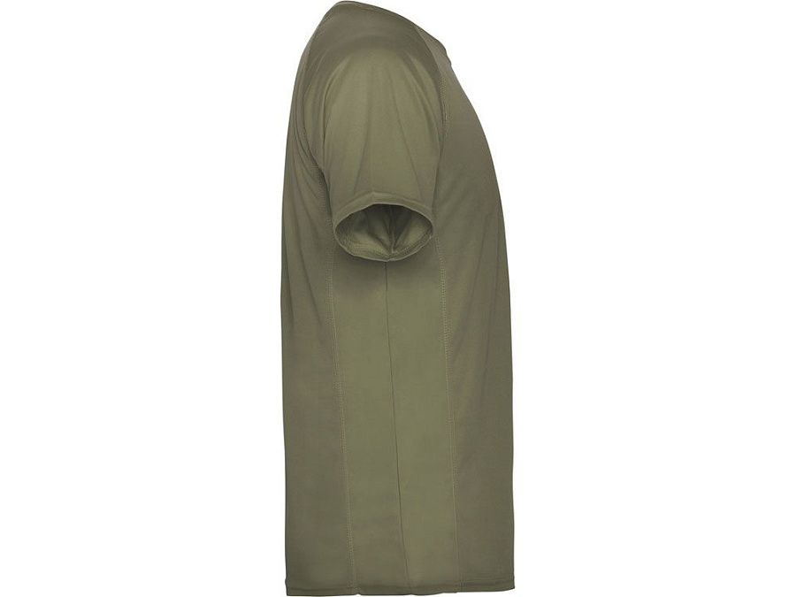 Спортивная мужская футболка с коротким рукавом реглан. Круглый вырез горловины и боковая вставка с отстрочкой плоским швом.
