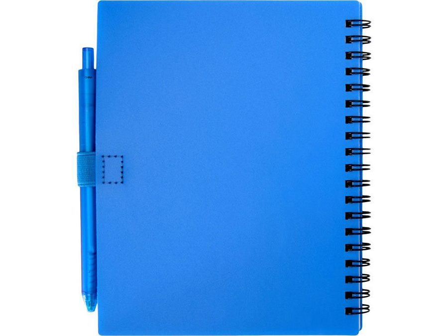 Блокнот Niove с мягкой обложкой изготовлен из переработанной пластмассы, имеет 70 нелинованных листов из бумаги плотностью 70 г/м². Блокнот имеет квадратные углы и петлю для ручки. Размер блокнота: 140 х 178 мм. Шариковая ручка также изготовлена из переработанной пластмассы. Цвет чернил: синий. Длина непрерывной линии: 1000 метров. Диаметр пишущего узла: 1,0 мм.