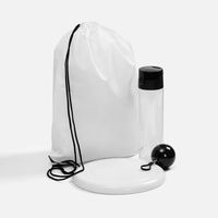 бутылка, футляр, тарелка-фрисби - пластик; плащ - полиэтилен, ПНД, плотность 12 мкм; рюкзак-мешок - спанбонд, плотность 70 г/м²
