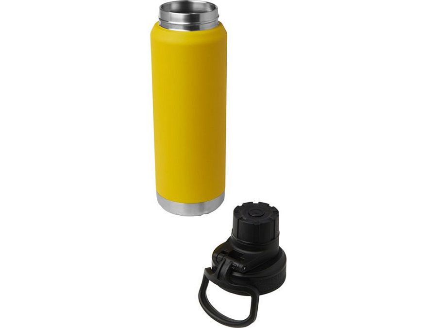 Бутылка из нержавеющей стали с двойными стенками и медной вакуумной изоляцией с навинчивающейся крышкой с защитой от протеканий, сертифицированная по стандарту RCS. Оснащена широким отверстием для легкого наполнения и чистки, а также удобной ручкой для переноски, встроенной в крышку. Подходит для газированных напитков. Прочное порошковое покрытие снаружи. Поставляется в подарочной коробке из переработанного картона. Объем: 700 мл.